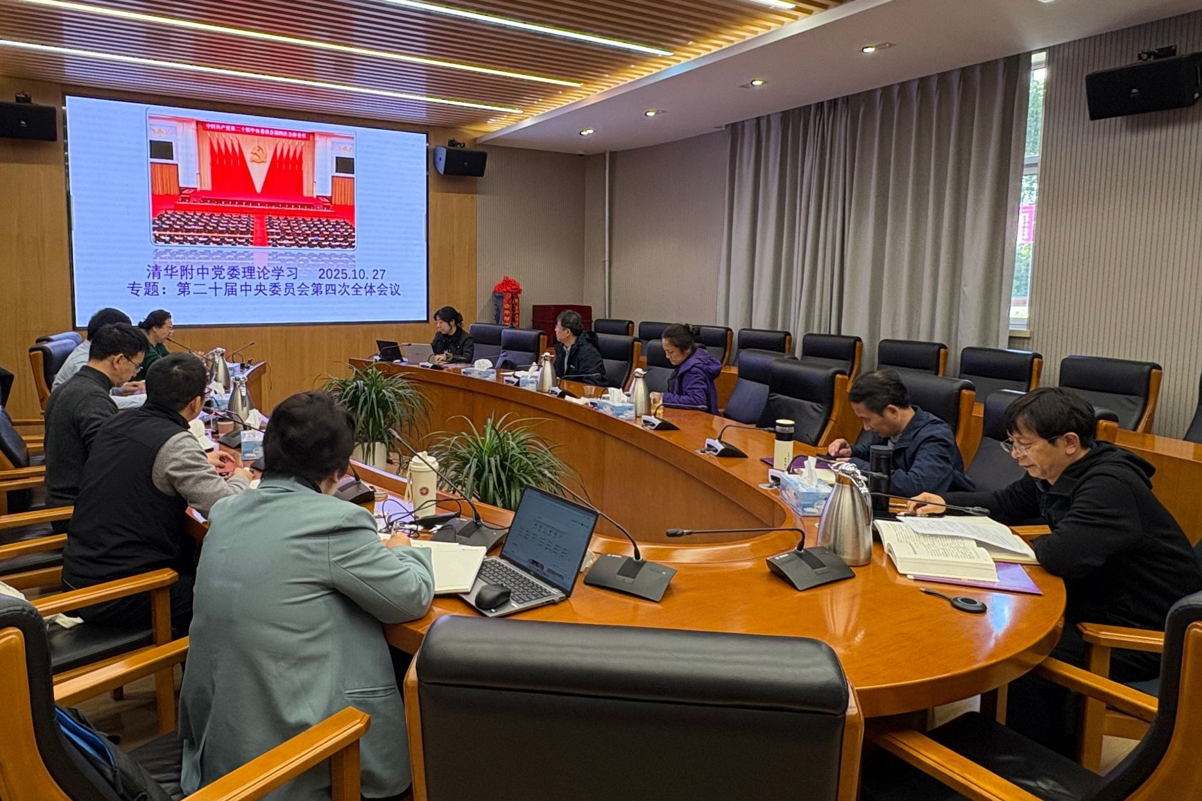 10月27日,清华附中理论中心组举行学习会,集中学习党的二十届四中全会精神。党委书记曹海翔主持会议,全体党委委员参加学习。