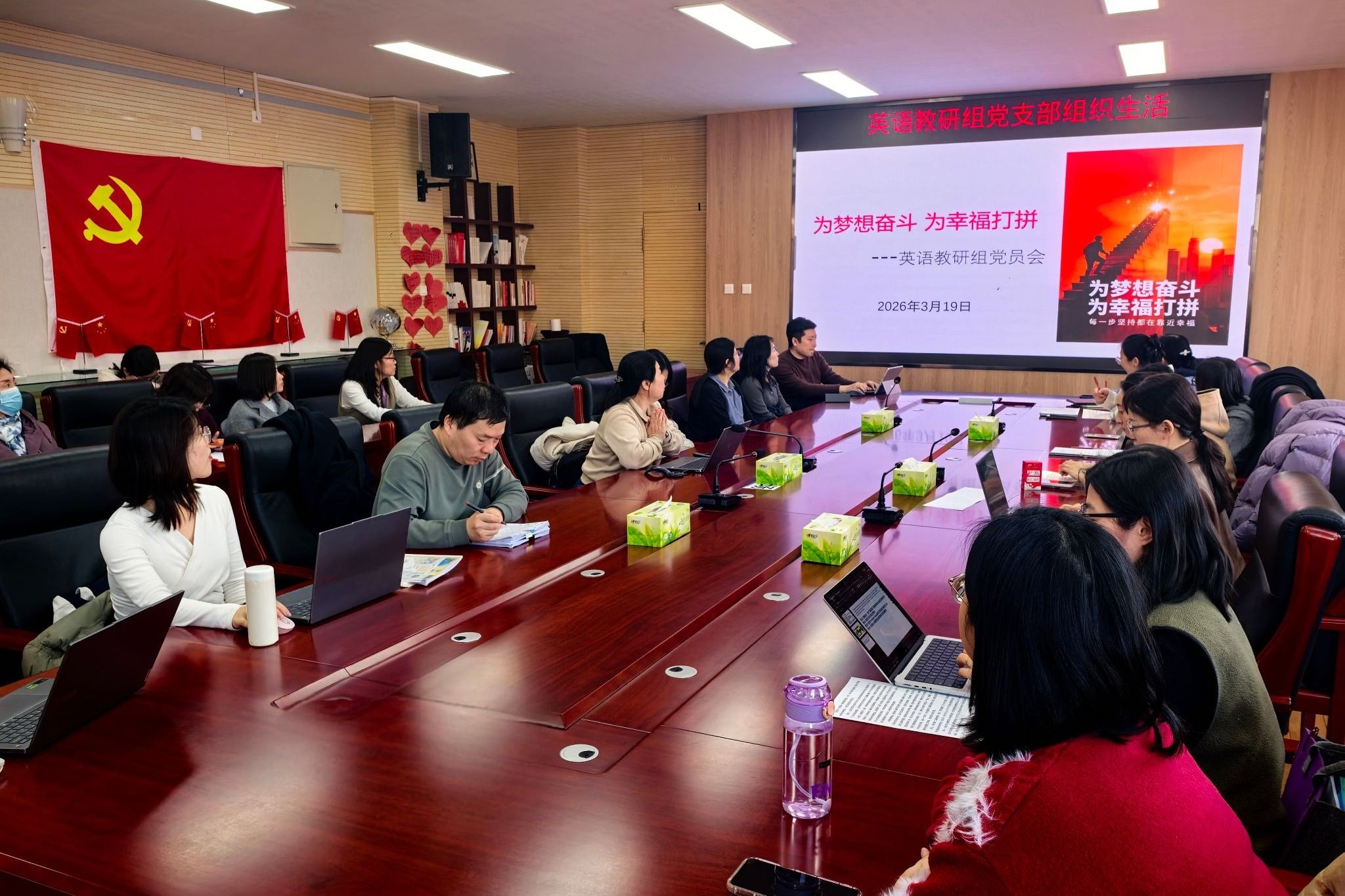 3月19日,为深入学习贯彻国家“十五五”规划纲要精神,落实附中2026年党委工作计划要求,引导党员教师树立正确政绩观,将国家发展战略与学科教学实践深度融合,英语教研组党支部开展专题组织生活,英语教研组全体党员教师参加。